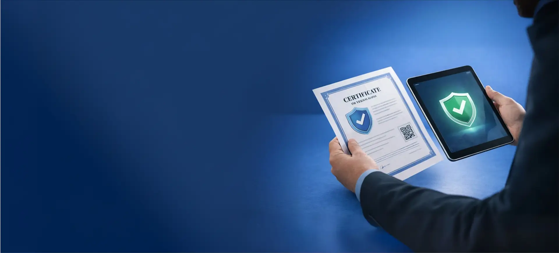Anyone can verify the certificate's authenticity via QR code, unique ID, or the public verification portal — no office visits needed.